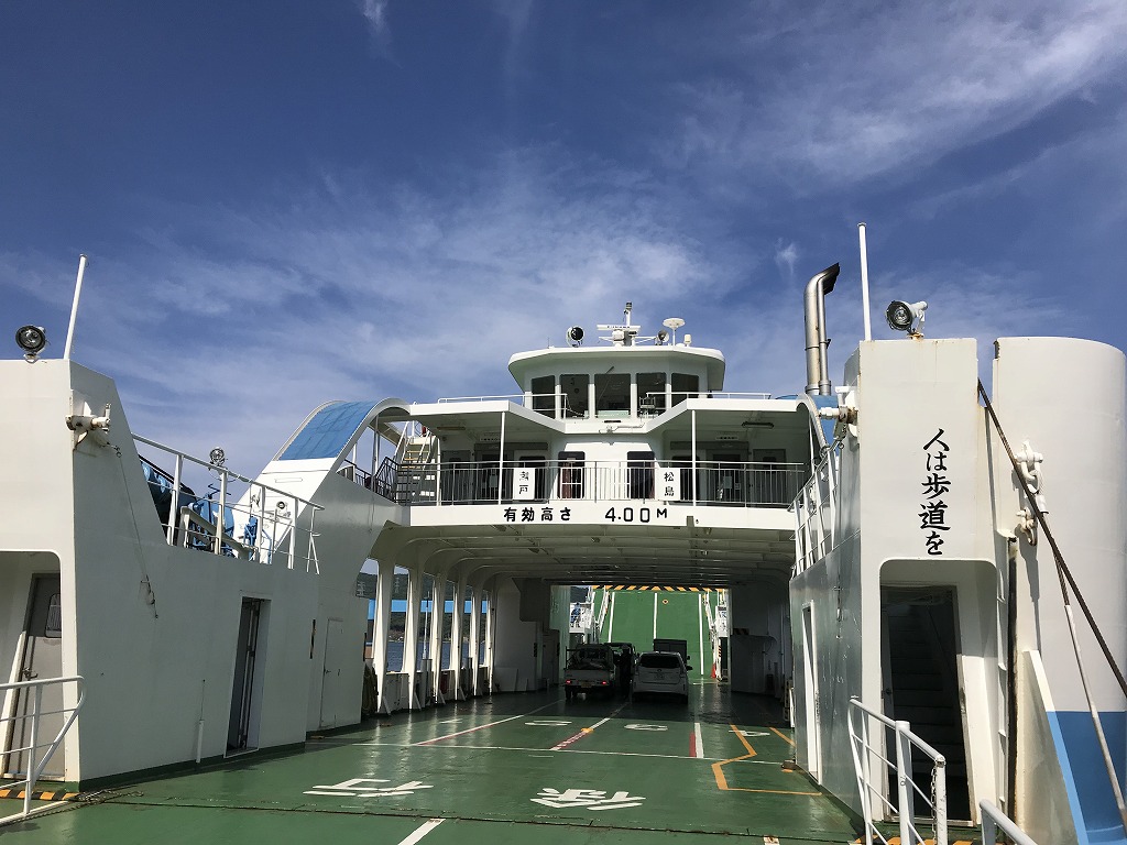 車で西海市の瀬戸港に行き瀬戸港に車を止めブロンプトンを船に乗せて松島にむかいます。