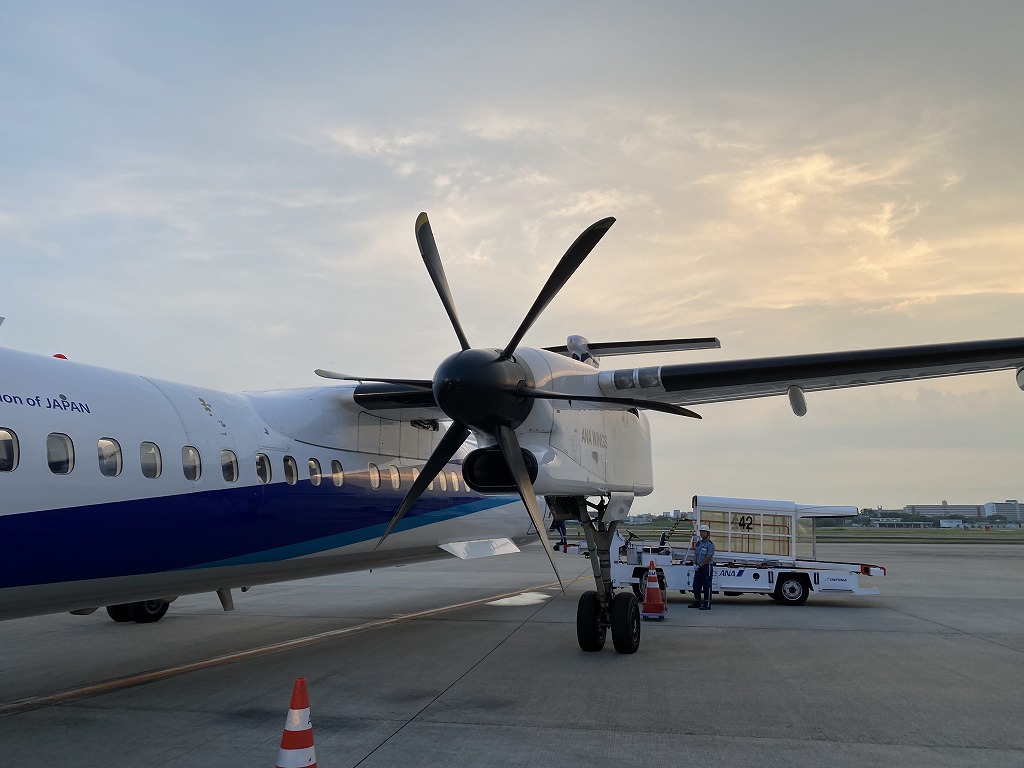 なんとその飛行機はDHC8-Q400ボンバルディアのプロペラ機ではないですか!