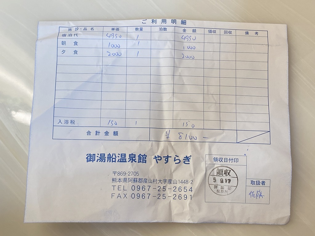 今回の産山村サイクルロゲイニング大会2023に参加で宿泊を