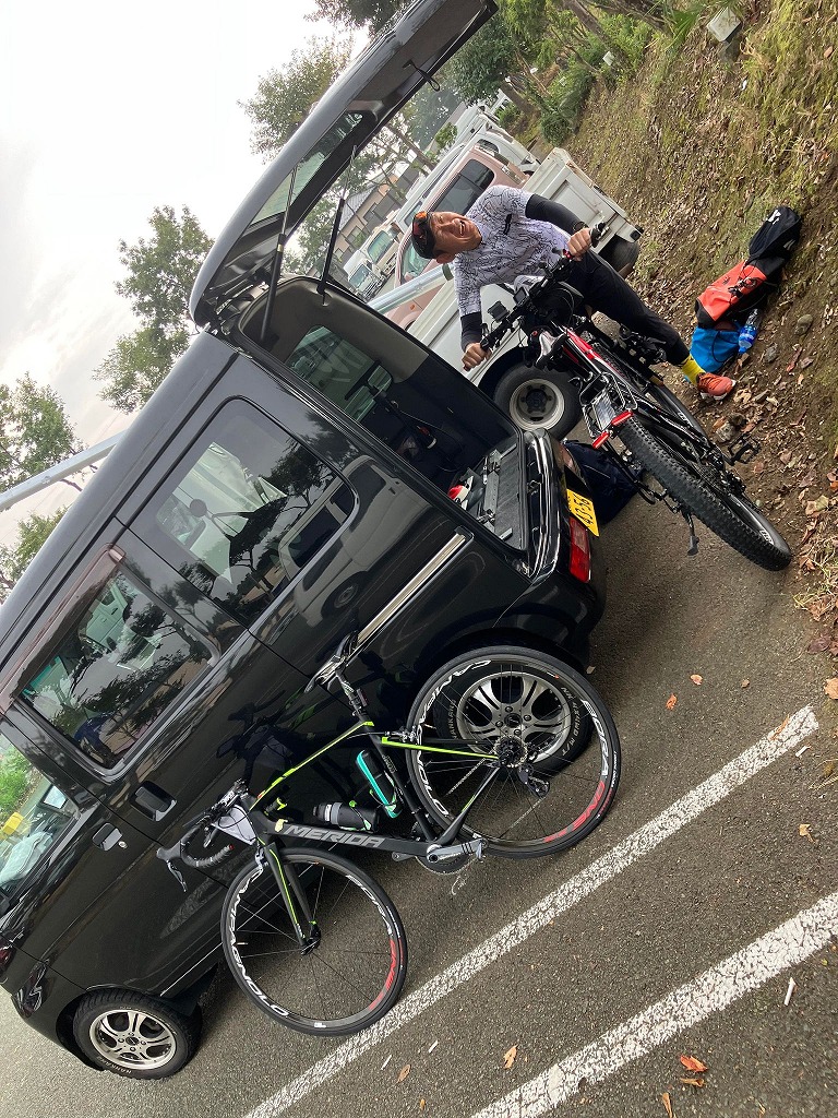 せっかく車から自転車を降ろしたのに雨が降り出し車にもどしました😢